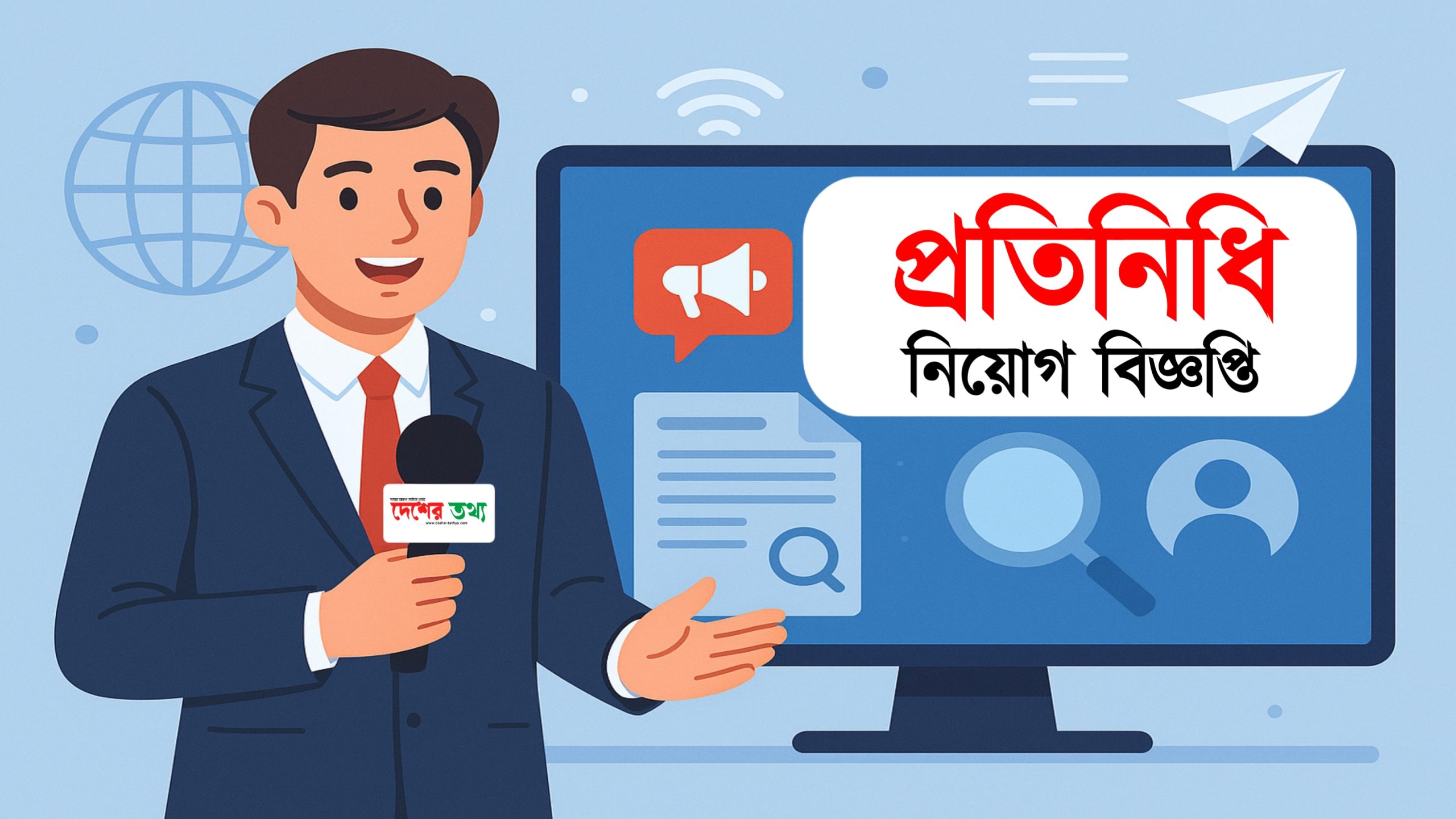 দেশের তথ্য নিউজ পোর্টালকে দেশের সর্বস্তরের মানুষের কাছে পৌঁছে দেওয়ার লক্ষ্যে বিভিন্ন পর্যায়ে প্রতিনিধি নিয়োগ দেওয়া হচ্ছে। নিয়োগের