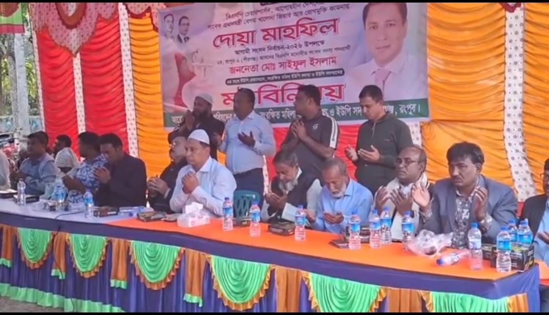 রংপুরের পীরগঞ্জে বিএনপি চেয়ারপার্সন ও দেশনেত্রী বেগম খালেদা জিয়ার দ্রুত আরোগ্য কামনায় আয়োজিত দোয়া মাহফিল এবং ত্রয়োদশ জাতীয় নির্বাচনকে